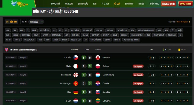 - Tìm kiếm thông minh: Website cung cấp thanh tìm kiếm trực quan, hỗ trợ lọc theo giải đấu, ngày giờ, đội bóng hoặc loại kèo (châu Á, châu Âu, Over/Under). Người dùng có thể tìm đúng trận trong vài giây, tiết kiệm thời gian và tăng hiệu quả soi kèo.
