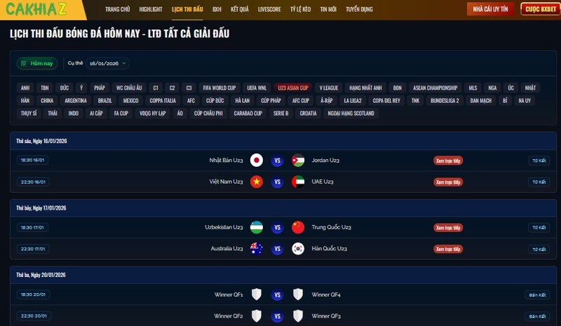 Điểm cộng đầu tiên khiến nhiều người yêu thích Cakhia chính là cách tổ chức nội dung rất rõ ràng. Ngay từ trang chủ, người dùng đã có thể dễ dàng tìm thấy danh sách các trận đấu đang diễn ra, sắp diễn ra trong ngày hoặc trong tuần.