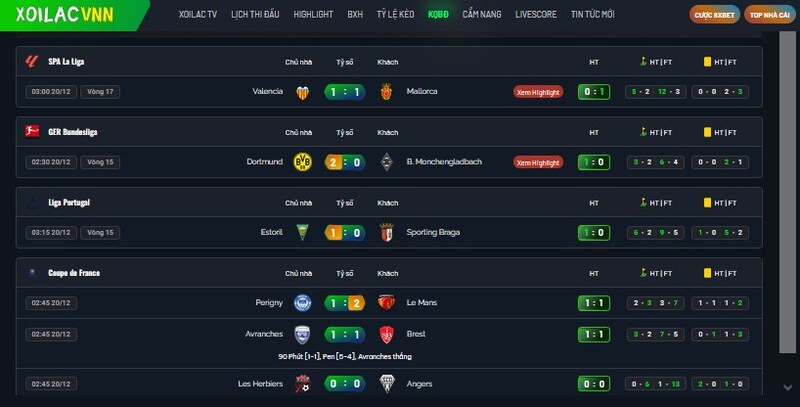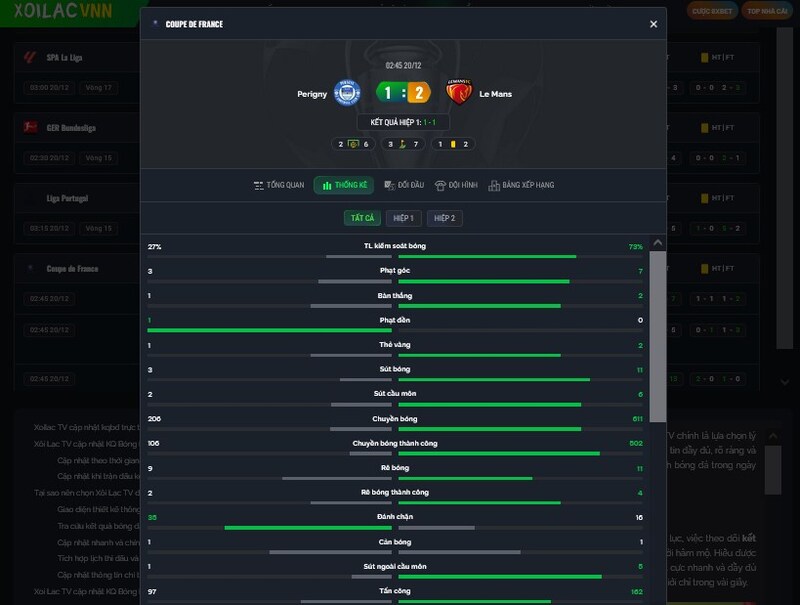 Một điểm cộng rất lớn của Xoilacvn là phần thông tin đi kèm ket qua bong da. Không phải kiểu chỉ ghi “Đội A 2–1 Đội B” rồi thôi. Ở đây, mình có thể thấy: