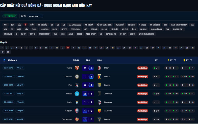 Với lối chơi kỷ luật và giàu chiến thuật, Serie A thu hút lượng lớn người hâm mộ. Ca Khia TV cung cấp kết quả cập nhật theo thời gian thực cho các trận đấu của Juventus, Inter Milan, AC Milan, Napoli và nhiều đội bóng khác. Dữ liệu được trình bày rõ ràng, giúp người xem dễ nắm bắt diễn biến và phong độ của các đội qua từng vòng đấu.